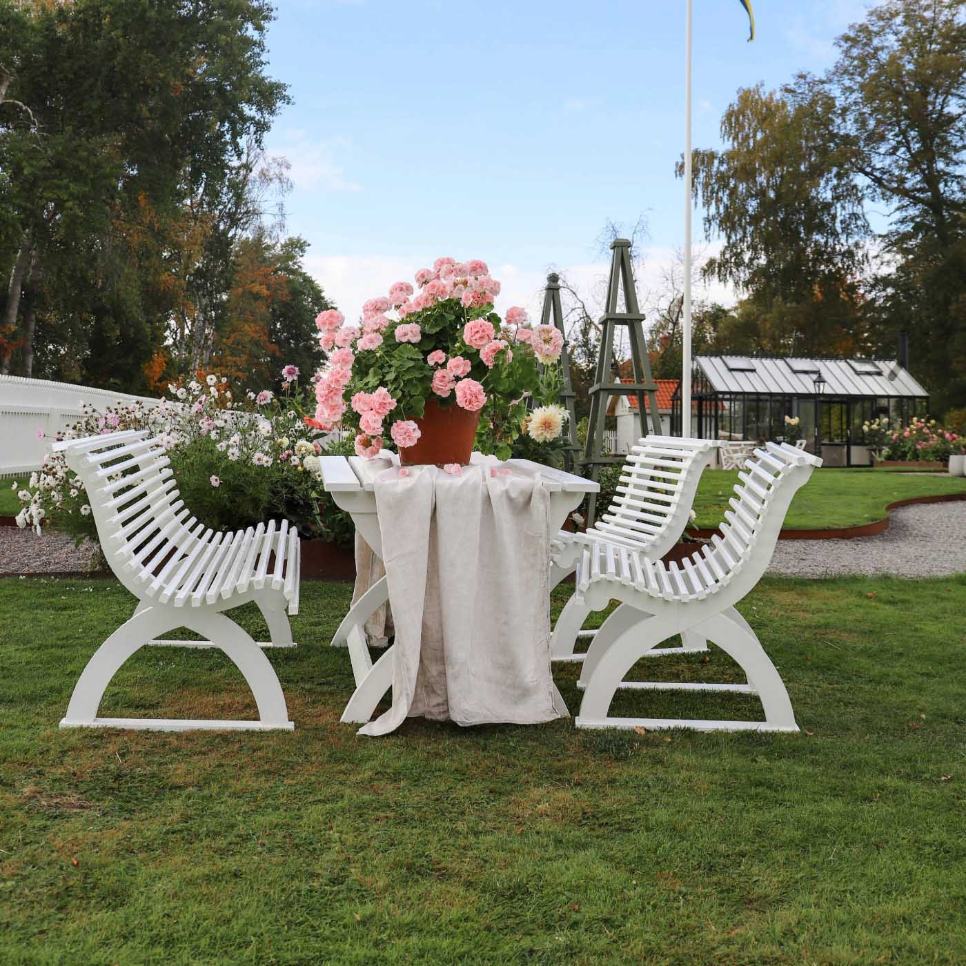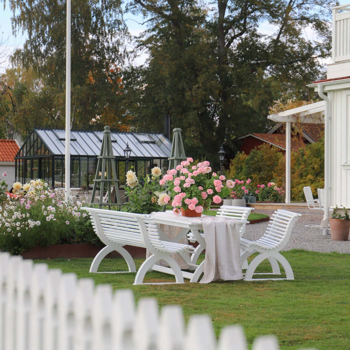 Trädgårdssoffa Astrid är en sekelskiftesinspirerad utesoffa i massivt svenskt trä – tillverkad med omsorg i Sverige enligt traditionellt hantverk och modern teknik. Varje soffa skapas för hand med noggrant utvalt virke för en genuin och hållbar möbelupplevelse.